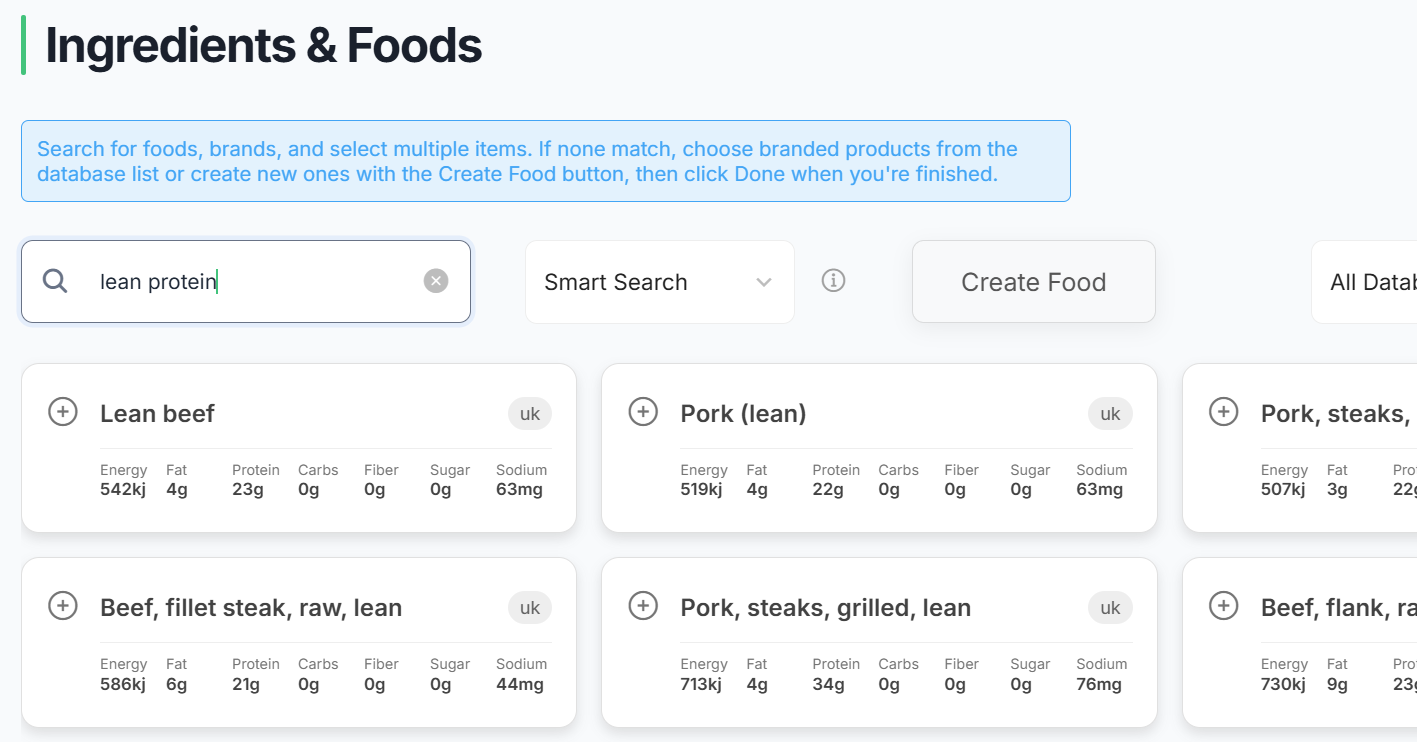 We’ve upgraded your search experience with Smart Search β€” the most advanced food search on the market powered by Foodzilla AI. You can now search things like "lean protein", "vitamin C rich fruit", "popular foods in the UK" and more!