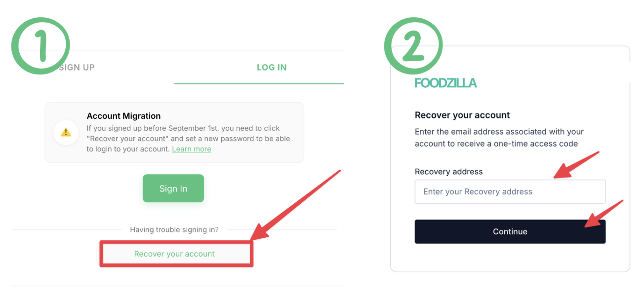 1️⃣ Go to the login page and click β€œRecover your account.”
