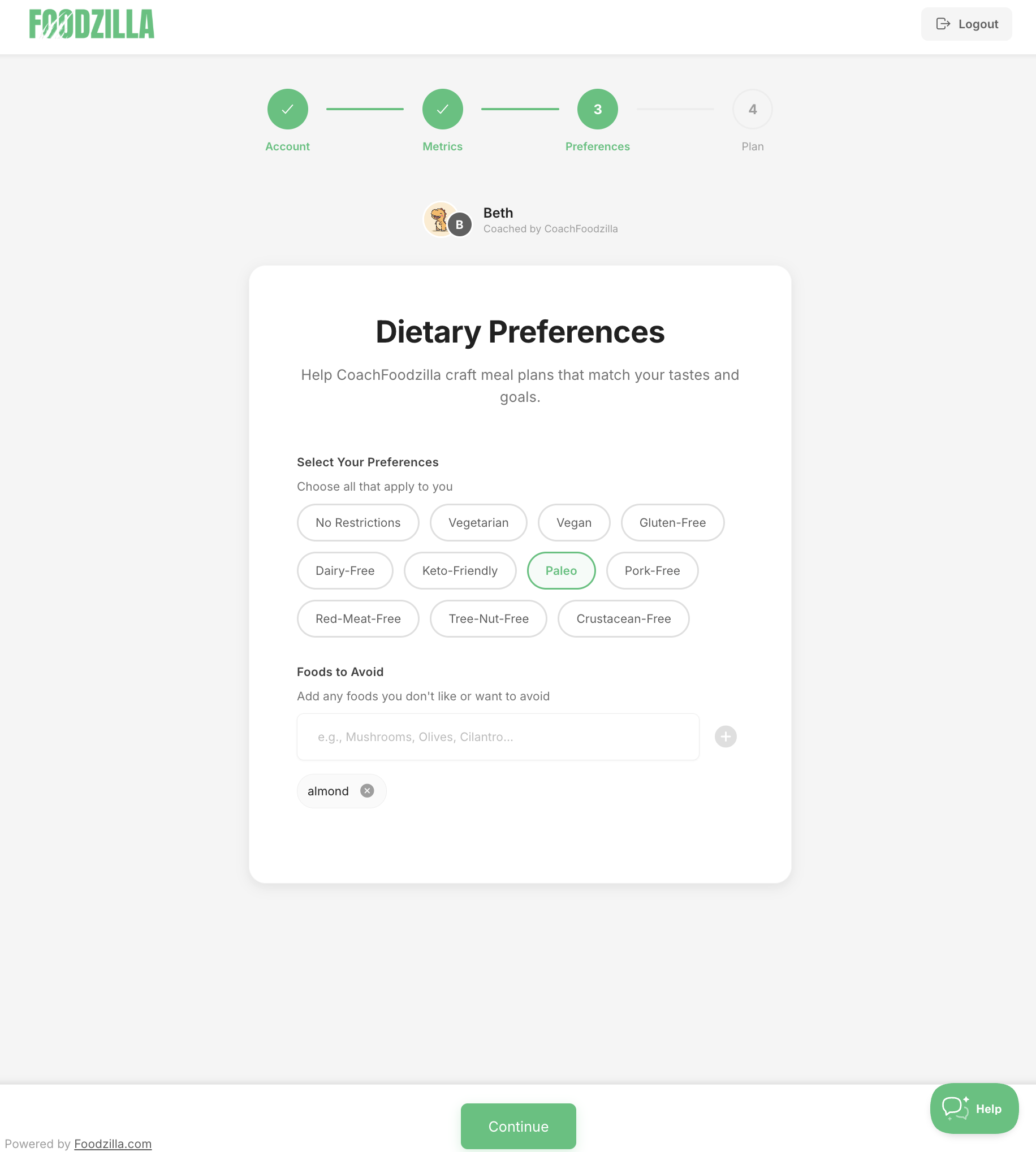 Clients can also specify foods to avoid (like shellfish, peanuts, or other allergens) directly from the Client Portal.