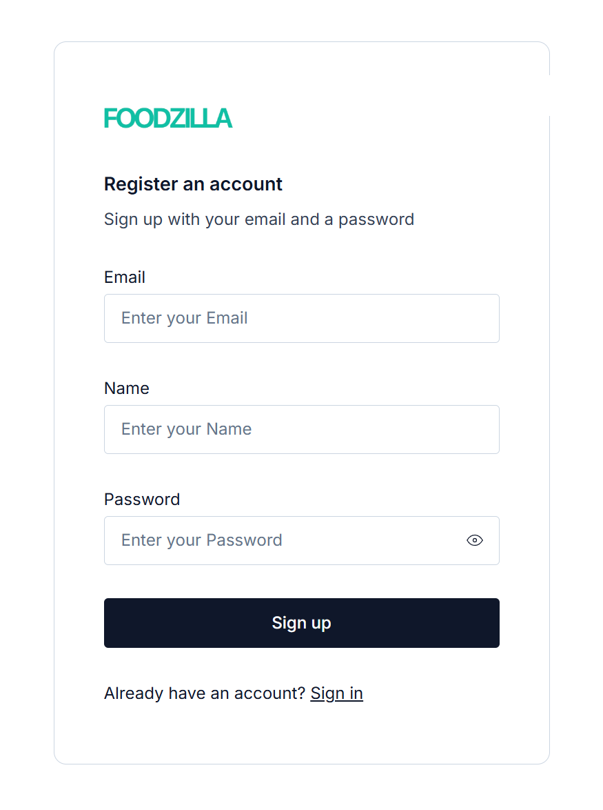 Signing up for Foodzilla is quick and easy!