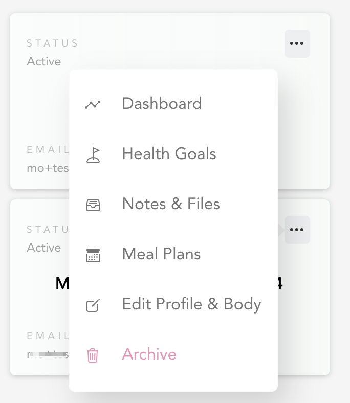 Archive Clients: Free up spots by archiving clients. Archive clients anytime by clicking the "・・・" button on the client card in the client dashboard.