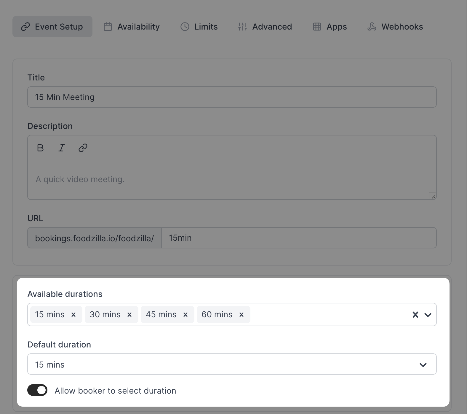 • Select the durations you want to offer, such as 30 minutes, 60 minutes, or any other lengths that suit your service. You can add as many options as necessary.